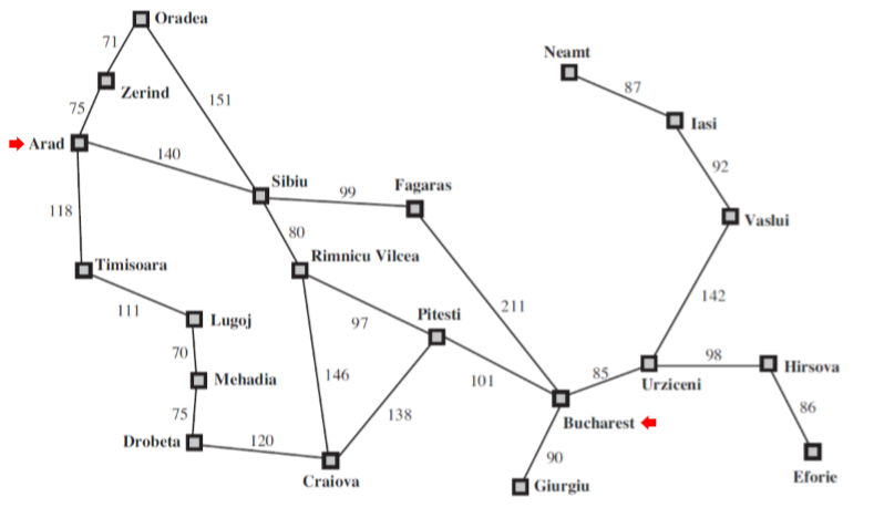 Arad에서 Bucharest를 가는 경우를 생각해보자.